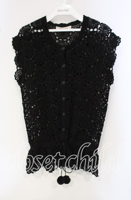 WONDERFUL WORLD / パッチワークかぎ編みベスト クロ O-25-09-30-074-LO-TO-IG-OS [戻る]