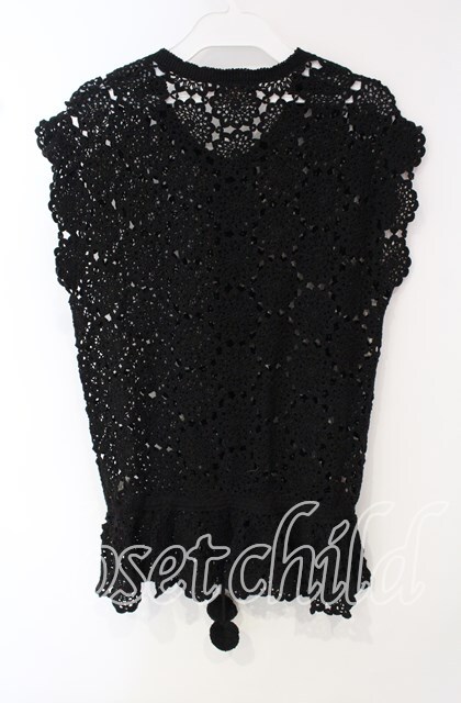 WONDERFUL WORLD / パッチワークかぎ編みベスト クロ O-25-09-30-074-LO-TO-IG-OS
