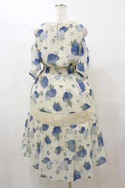 axes femme / 紫陽花柄ロングワンピース M 生成り/紺 H-25-10-07-074-AX-OP-NS-ZH