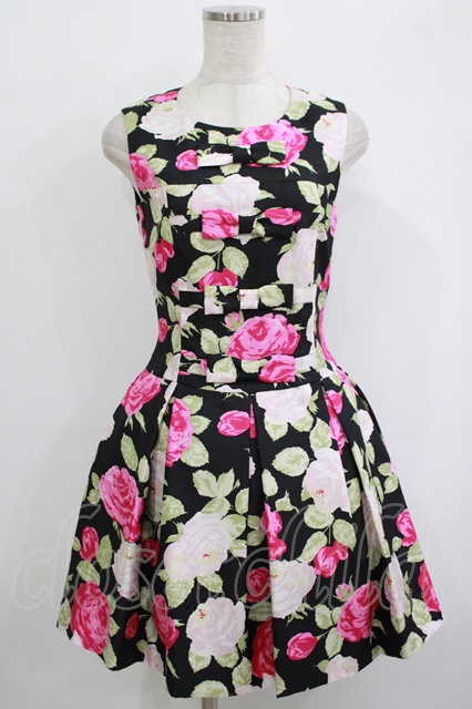 JESUS DIAMANTE / ロマンスドールワンピII 38 JAPONローズ柄黒 H-25-10-08-029-JE-OP-NS-ZH