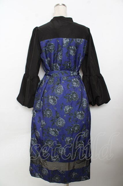 axes femme / バルーンスリーブフラワーワンピース 黒×パープル Y-25-10-03-119-AX-OP-SZ-ZI [戻る]