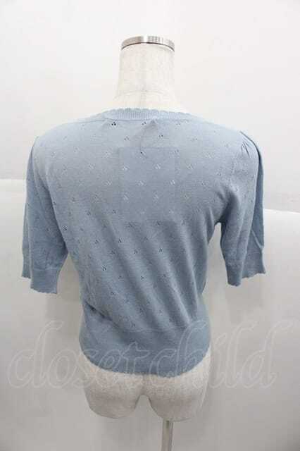 an another angelus / フラワーレース半袖ニットカーディガン サックス I-25-09-30-030-CA-TO-SA-ZI