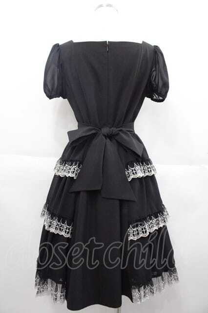 Moi-meme-Moitie / サイドギャザー十字架ワンピース 2 ブラック×ホワイト I-25-09-30-103-MO-OP-SA-ZI