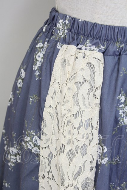 axes femme / レース花パッチワークスカート ブルー T-25-10-02-025-AX-SK-HR-ZS