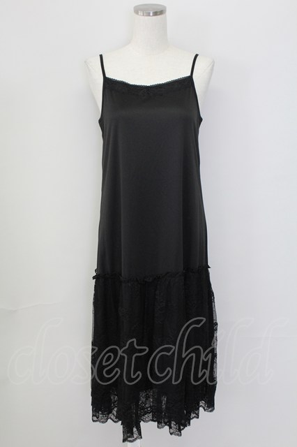 axes femme / レース使いペチワンピース 黒 T-25-10-02-010-AX-OP-HR-ZS