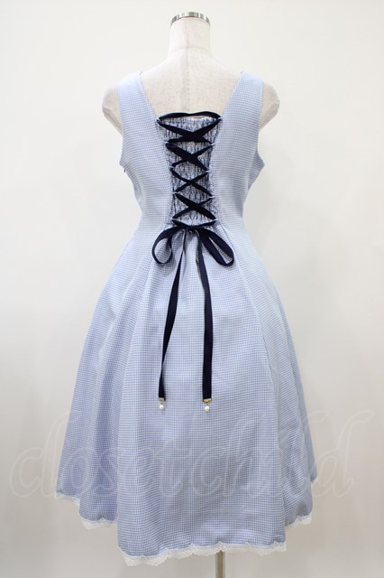 axes femme / 編み上げ千鳥格子ジャンスカ Free サックス H-25-10-07-1027-AX-OP-NS-ZH