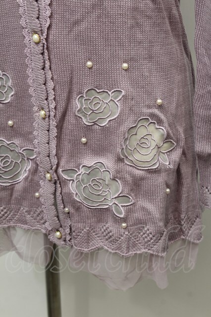 axes femme / 透かしバラロングカーディガン ラベンダー S-25-10-03-038-AX-TO-AS-ZS