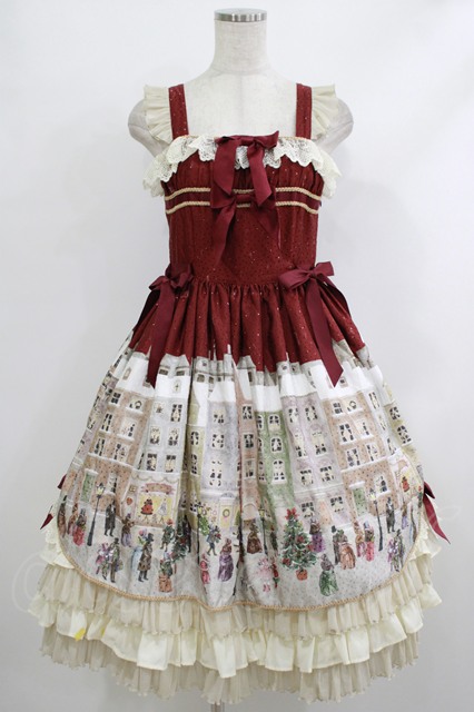 BABY,THE STARS SHINE BRIGHT / 星すむ今宵のトロイメライ柄ロングフリルジャンパースカート Free エンジ H-25-10-09-003-BA-OP-NS-ZH [戻る]