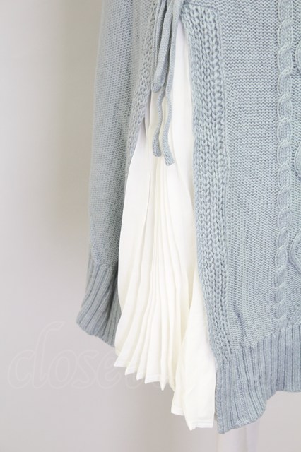 axes femme / サイドプリーツニットチュニック M サックス T-25-10-08-014-AX-TO-SA-ZI