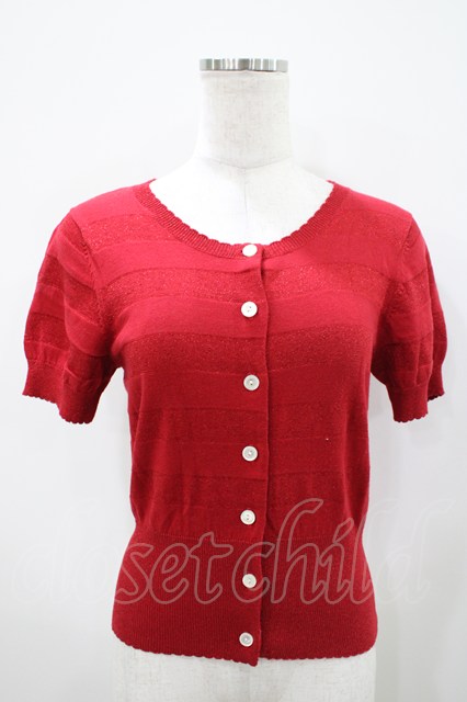 Emily Temple cute / ラメボーダー半袖カーデ レッド H-25-10-11-029-ET-TO-KB-ZH [戻る]