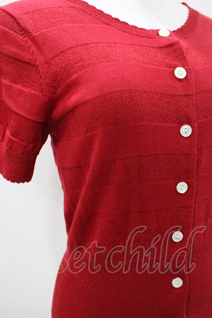 Emily Temple cute / ラメボーダー半袖カーデ レッド H-25-10-11-029-ET-TO-KB-ZH