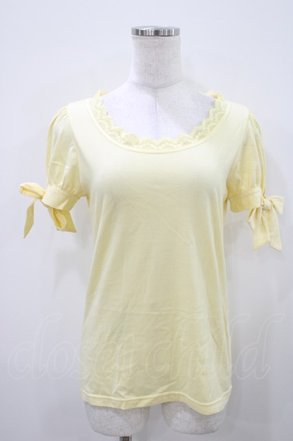 Emily Temple cute / リボンパフカットソー イエロー H-25-10-11-016-ET-TO-KB-ZH