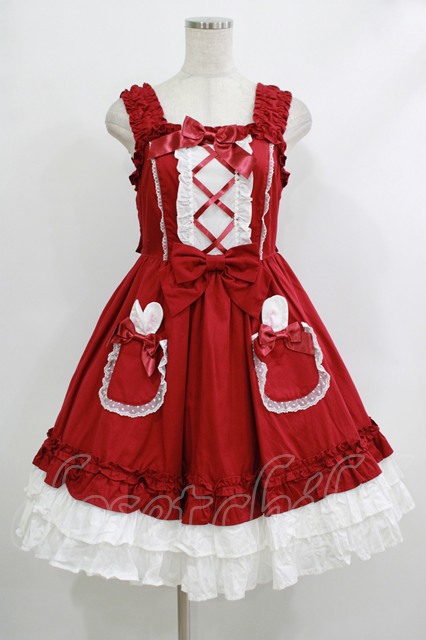Angelic Pretty / Lovely BunnyジャンパースカートSET Free ワイン H-25-10-10-092-AP-OP-NS-ZH