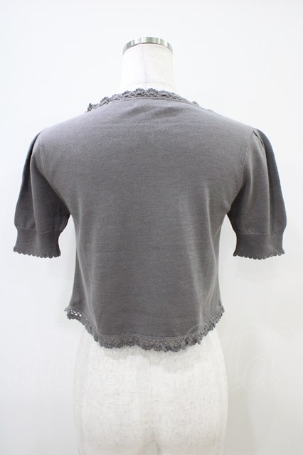 Emily Temple cute / リボン半袖ボレロ グレー×ピンク H-25-10-12-055-ET-TO-KB-ZH