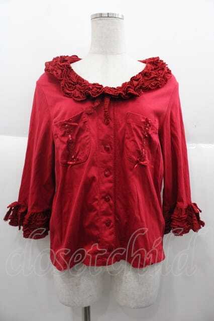 PINK HOUSE / ローンフリル使いスムースカーディガン 赤 I-25-10-04-060-LO-TO-SA-ZI