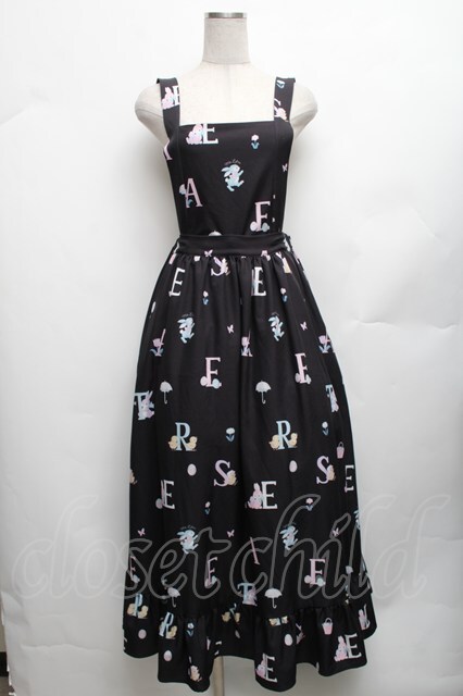 Ms LUTRA / ラビットアルファベット柄ジャンパースカート 黒 S-26-01-23-036-LO-OP-SA-ZS