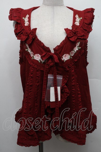 PINK HOUSE / エターナルローズ刺繍ベスト F 赤 S-26-03-17-038-LO-TO-SZ-ZS