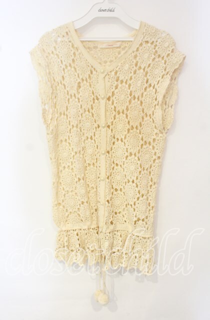 WONDERFUL WORLD / パッチワークかぎ編みベスト アイボリー O-25-10-06-055-LO-TO-IG-ZT357
