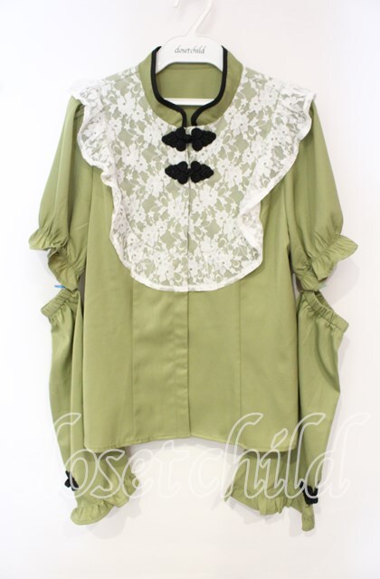 axes femme kawaii / アームカバー付チャイナ釦ブラウス M グリーン O-25-10-06-022-AX-BL-OW-ZT513