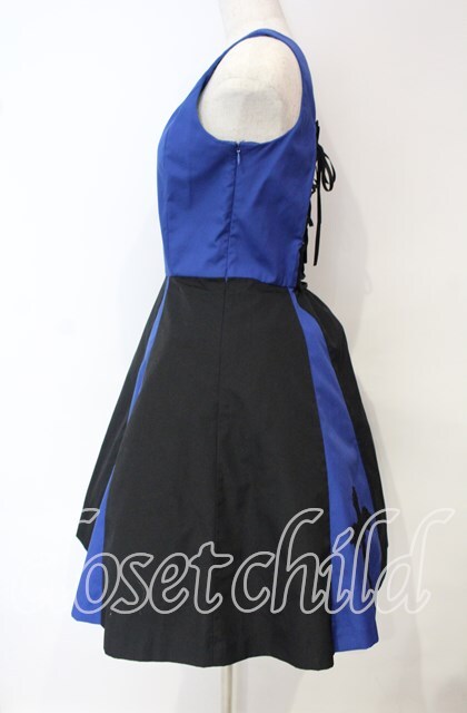 Moi-meme-Moitie / バイカラー十字架アップリケジャンパースカート 9号 ブラック×ブルー O-25-10-06-008-MO-OP-OW-OS
