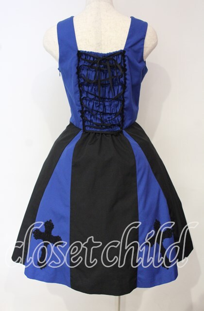 Moi-meme-Moitie / バイカラー十字架アップリケジャンパースカート 9号 ブラック×ブルー O-25-10-06-008-MO-OP-OW-OS [戻る]