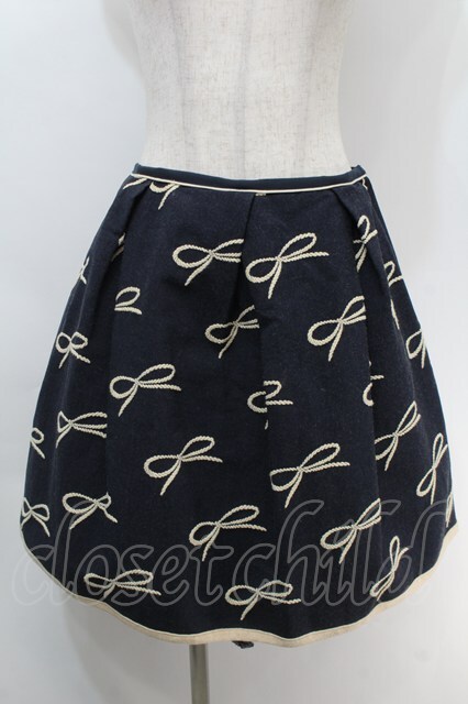 Lois CRAYON / リボン刺繍スカート 紺 S-25-10-06-1052-LO-SK-AS-ZT269
