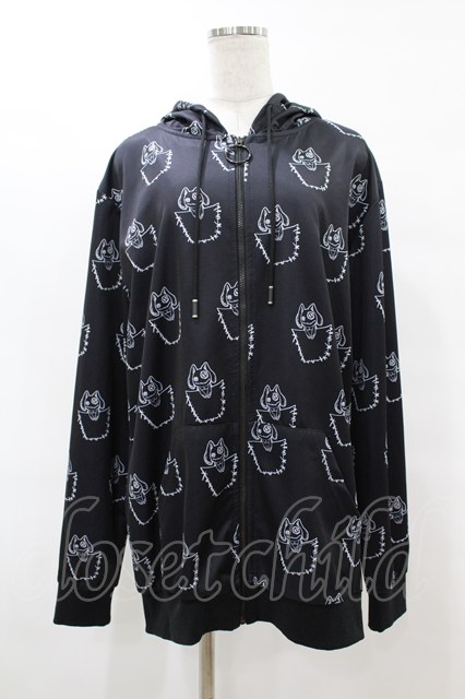 NieR Clothing / 総柄ZIPパーカー F 黒 H-25-10-14-006-PU-TO-KB-ZH