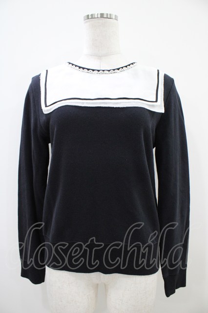 Jane Marple / スクエアカラースウェットトップス 黒 H-25-10-14-1038-JM-TO-KB-ZH