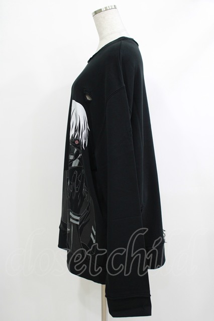 QOOZA / 東京喰種×QOOZA金木研 ダメージスウェット ブラック H-25-10-13-1031-PU-TO-KB-ZY
