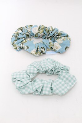 PINK HOUSE / White Clover柄&ギンガムチェックシュシュ サックスxミント S-25-10-08-015-LO-AC-HR-ZS