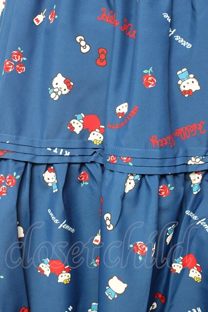 axes femme / ハローキティプリントスカート 青 Y-25-10-10-159-AX-SK-SZ-ZI
