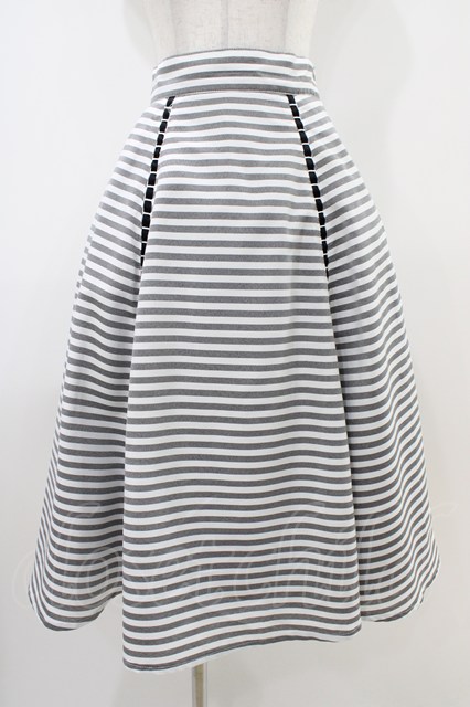 an another angelus / はしごリボン使いストライプフレアースカート Free BLACK×WH H-25-10-15-037-CA-SK-NS-ZH
