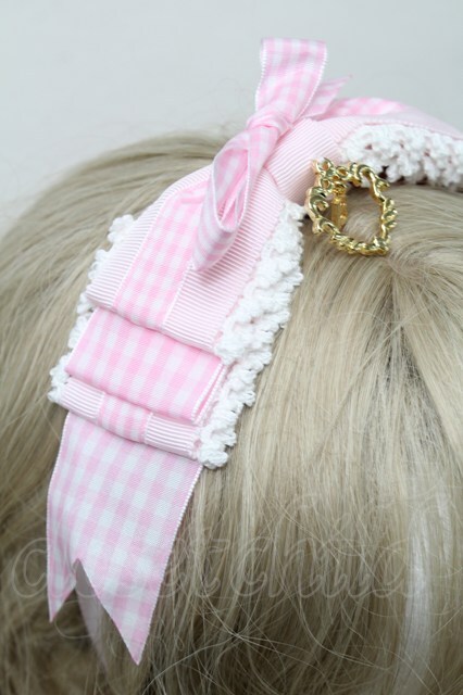 BABY,THE STARS SHINE BRIGHT / Hearty Ginghamリボンカチューシャ ピンクx白 S-25-10-09-024-BA-OP-HR-ZS
