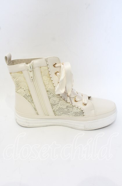 axes femme / レースハイカットスニーカー S キナリ O-25-10-10-042-AX-SH-OW-ZT-K003