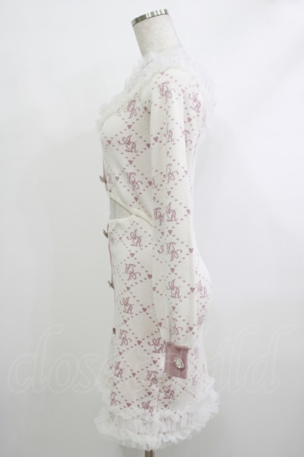 Ank Rouge / モノグラムニットワンピース M オフ/ピンク H-25-10-15-1020-CA-OP-NS-ZH