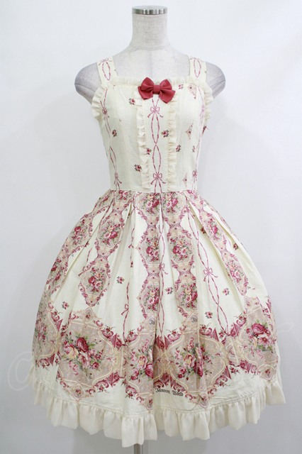Innocent World / ピュアローズシフォンフリルジャンパースカート M94cm丈 生成り/ピンク H-25-10-15-1007-IW-OP-NS-ZH
