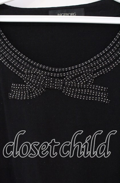 INGEBORG / ドットリボンデザインカットソー 11号 クロ O-25-10-11-033-LO-TO-OW-OS