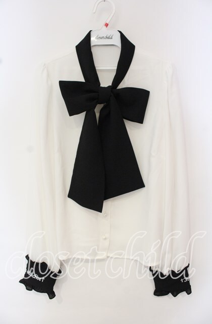 Jamie エーエヌケー / リボンブラウス M シロ×クロ O-25-10-11-089-LO-BL-OW-OS