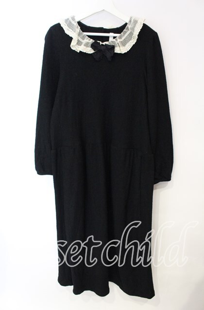 PINK HOUSE / チュール襟長袖ワンピース【お直しあり】 クロ O-25-10-11-059-LO-OP-IG-OS