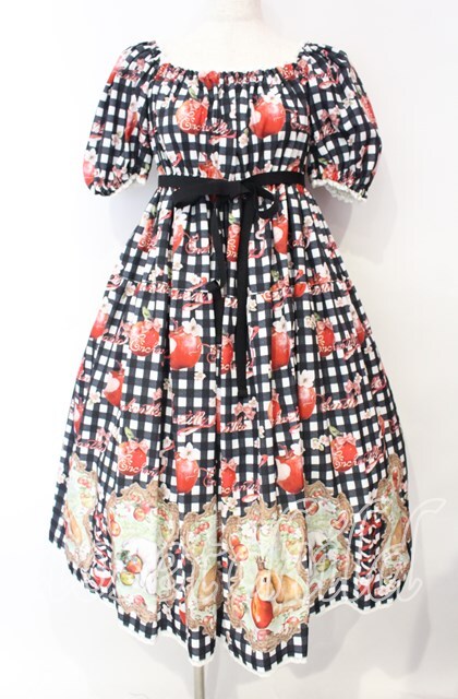Enchantlic Enchantilly / プリリリィ 〜夢見る赤林檎〜 ギンガムチェックワンピース クロ O-25-10-11-005-LO-OP-IG-OS