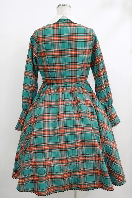 Belette / チェック丸襟ワンピース グリーン H-25-10-16-1001-PU-OP-KB-ZH [戻る]