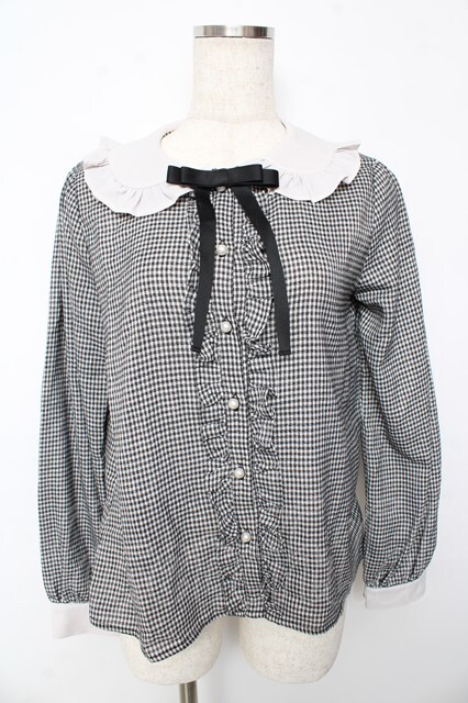 Ank Rouge / フリルカラーギンガムブラウス M 黒 Y-25-10-13-053-CA-BL-SZ-ZY