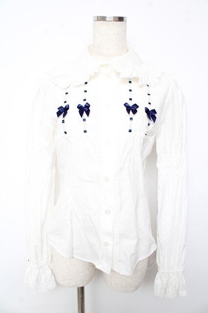 BABY,THE STARS SHINE BRIGHT / うさくみゃちゃんのpetit ribbonブラウス 紺 Y-25-10-13-060-BA-BL-SZ-ZY [戻る]