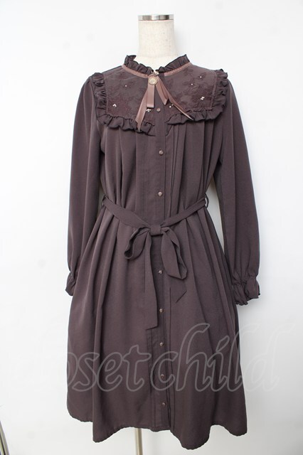 axes femme / ブローチ付長袖ブラウスワンピ M グレー Y-25-10-13-101-AX-OP-SZ-ZI