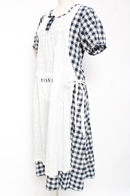 PINK HOUSE / エプロン付きブロードギンガムワンピース F 紺 Y-25-12-20-085-LO-OP-SZ-ZY