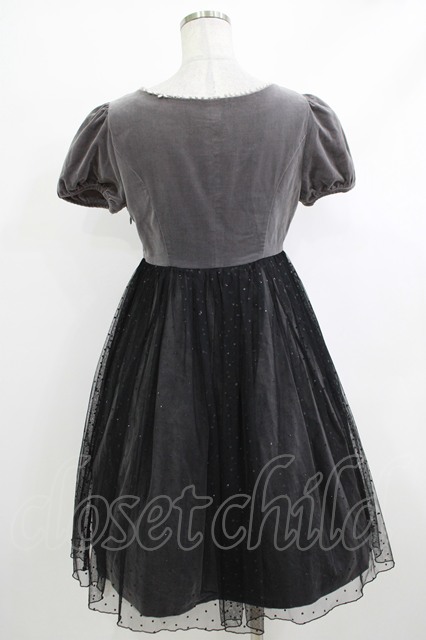 Emily Temple cute / ドットチュール別珍ワンピース グレー H-25-10-17-1033-ET-OP-KB-ZH