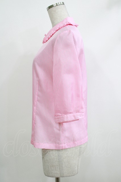 Jane Marple / ループカラーギンガムブラウス ピンク H-25-10-17-1057-JM-BL-KB-ZH