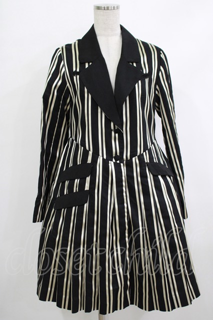 Candy Stripper / OLYMPIAN STRIPE PLEATS ONE-PIECE 1(S) BLACK×OFF WHITE H-25-10-17-1013-PU-OP-KB-ZH
