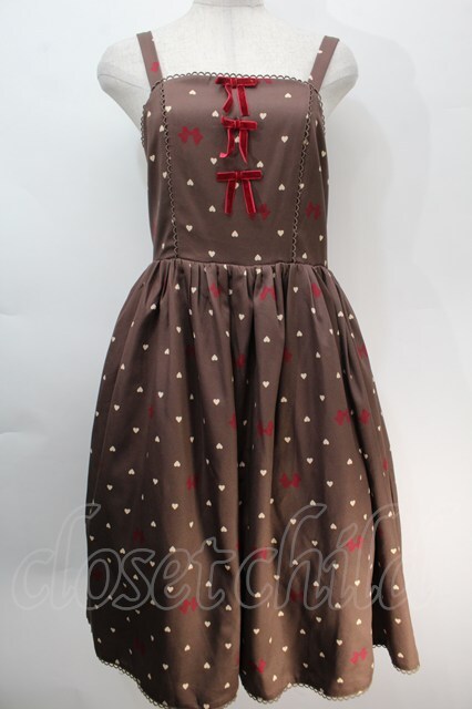axes femme kawaii / ハートドット柄ジャンスカ ブラウン S-25-10-12-045-AX-OP-HR-ZS