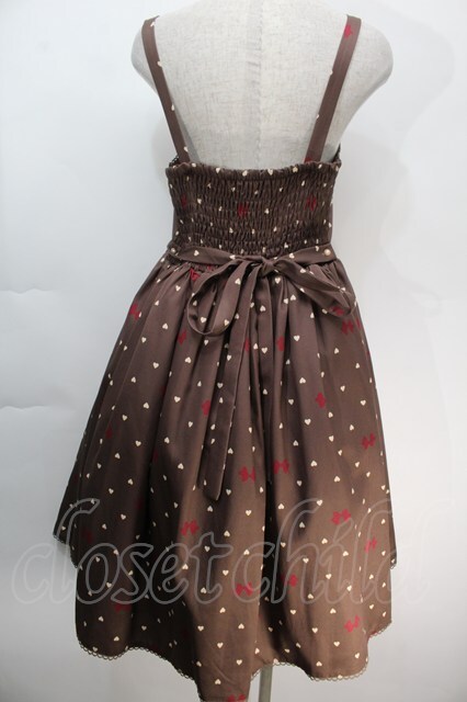 axes femme kawaii / ハートドット柄ジャンスカ ブラウン S-25-10-12-045-AX-OP-HR-ZS